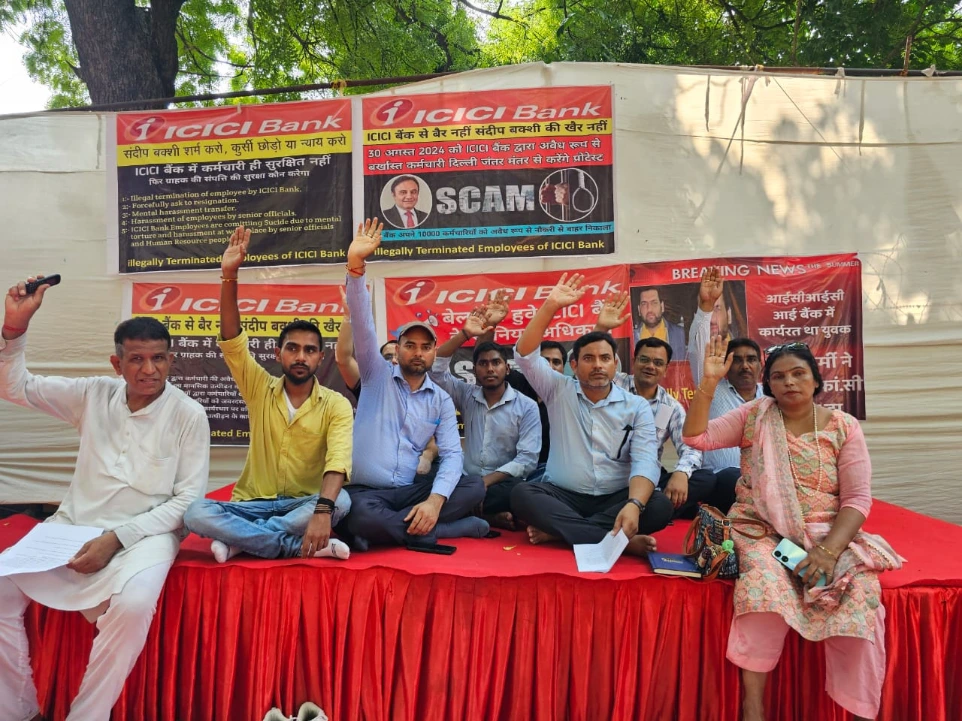 This protest was strategically held at a key ICICI Bank location, directly highlighting grievances at the operational level and drawing public attention to internal practices.